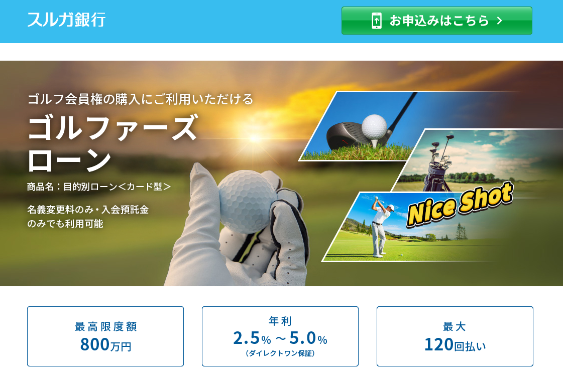 ・スルガ銀行|ゴルファーズローン(商品ページ):https://www.surugabank.co.jp/reserved/landing/golf/